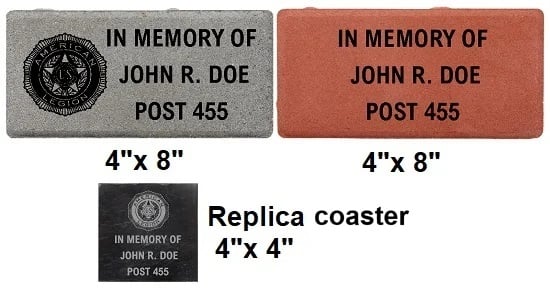 Our Auxiliary is proud to offer to our Legion Members, to our Legion families, to those who have served and are currently serving, our community, and of course to our neighboring communities, the opportunity to recognize and support their loved one's current or past service and/or to honor a passed family members' service, by having their names forever engraved onto a Honor Brick or Memorial Brick.