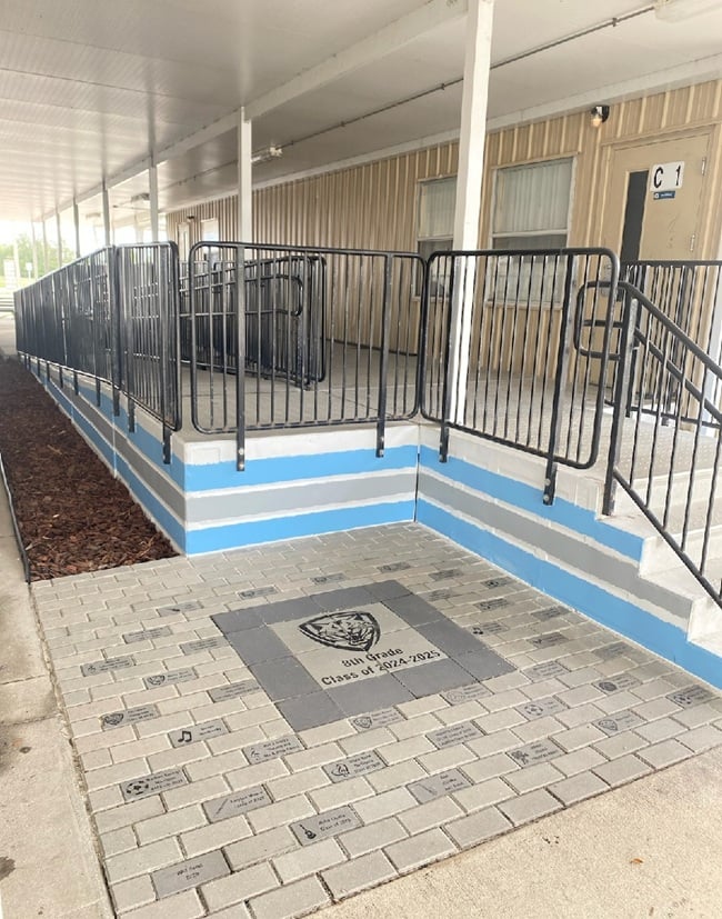 Pavers will be located to the right of the cafeteria in the corner of the portable.