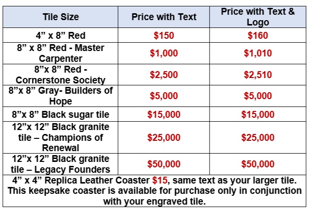 Honor a loved one. Celebrate your family. Promote your business. Leave your mark of love and faith for generations to come.