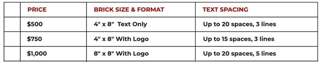 custom brick displayed prominently in our new headquarters. Each brick can be engraved