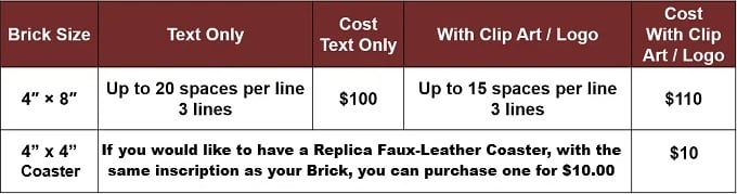 You may also order a smaller keepsake (replica leather coaster) to remind you of your memorial Brick!