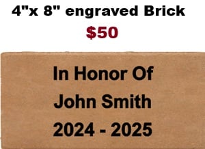 Our memorial brick project will allow individuals to purchase an engraved brick that will be placed in our new patio area adjacent to our clubhouse.