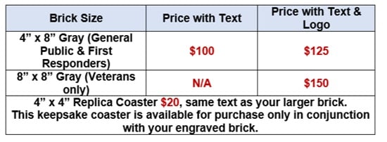 8" brick allow you to list the name of a veteran, a military unit,