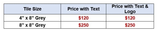You can create your own unique tile with your choice of personal message and/or a customized logo being engraved and featured in a prominent area by our Snack Shack.