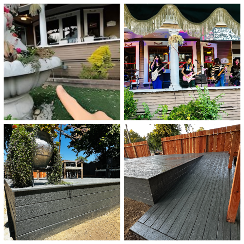 brand new outdoor stage and install a brick-lined planter at the front of our