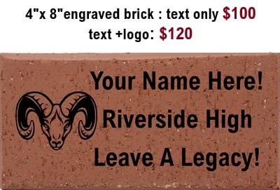Suggested options below. All bricks should include family name and/or student name, year the student has or will graduate, and the option of a Riverside tagline (ex. RAMily, Roll ‘Side).