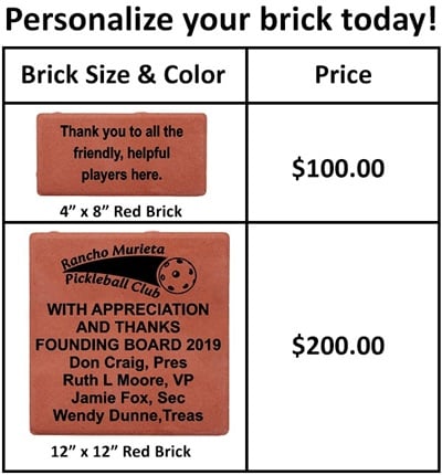 for the improvement and maintenance of this community facility. Bricks can be